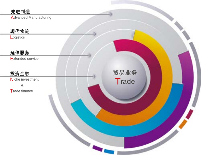The company operates under a“TALENT” pattern. That is: Trade, Advanced manufacturing, Logistics, Extended services, Niche investment & Trade finance. Provide modern supply chain service to the market.
