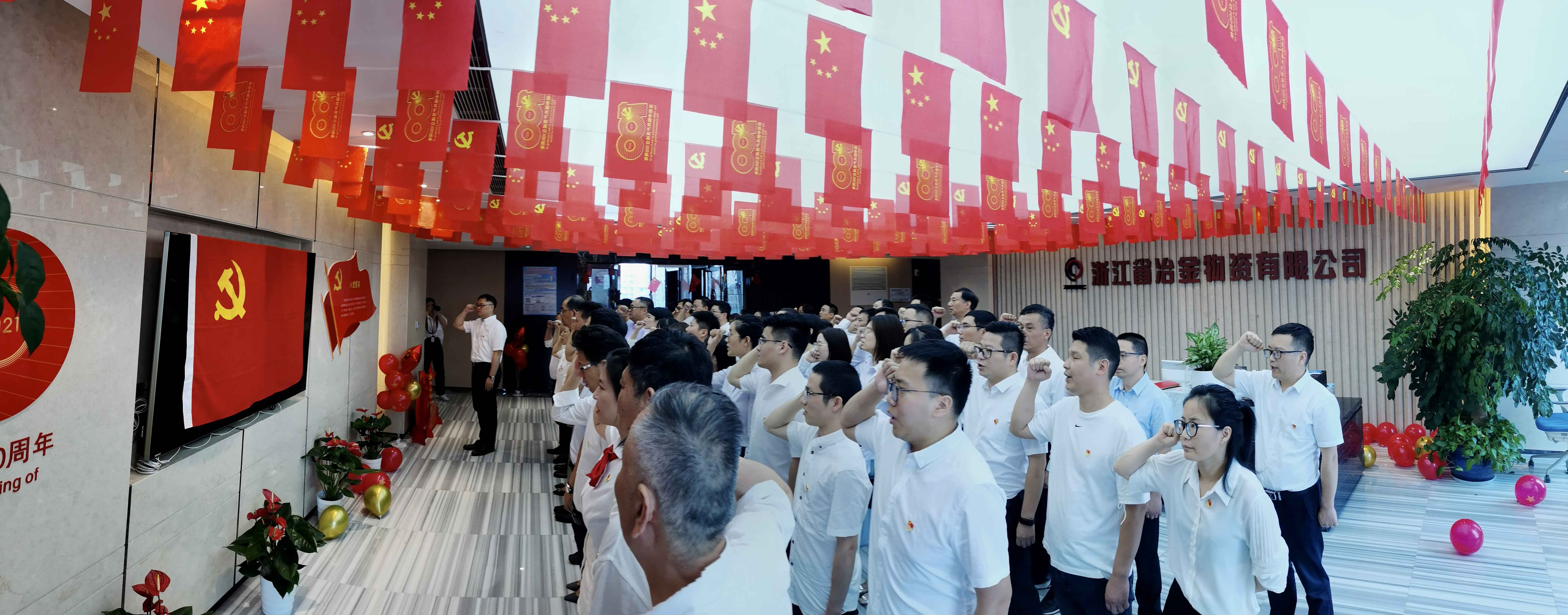 71日上午,浙江省冶金物資有限公司與寧波銀行杭州九堡支行共同組織集中開展主題黨日活動收看慶祝中國共產黨成立100周年大會慶典盛況,學習習近平總書記發表的重要講話,共慶黨的百年華誕會上,雙方黨員在冶金物資黨委書記、董事長、總經理鄭浩的帶領下重溫入黨誓詞,冶金物資第二黨支部和寧波銀行杭州九堡支行黨支部舉行了支部共建簽約儀式。