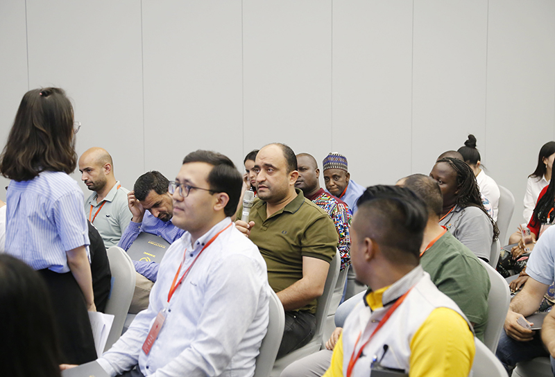 會(huì)上,鄭浩用英文介紹了杭鋼集團(tuán)的概況以及冶金物資的經(jīng)營(yíng)發(fā)展情況,并與研修班學(xué)員互動(dòng),回答學(xué)員的現(xiàn)場(chǎng)提問(wèn)。國(guó)際事業(yè)部相關(guān)業(yè)務(wù)負(fù)責(zé)人就具體業(yè)務(wù)內(nèi)容與研修班學(xué)員進(jìn)行交流。
