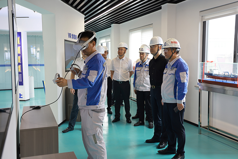 鄭浩一行參觀了VR體驗(yàn)中心、船舶修造現(xiàn)場(chǎng),感受寧興船舶數(shù)字化轉(zhuǎn)型升級(jí)的成效,并圍繞高附加值船舶修造、船舶智能制造配套中心等方面展開(kāi)深入交流。此次考察增進(jìn)了彼此的了解,為雙方后續(xù)在特種鋼材供應(yīng)、零部件配套等領(lǐng)域合作提供實(shí)踐參考,進(jìn)一步挖掘合作共贏的發(fā)展空間。
