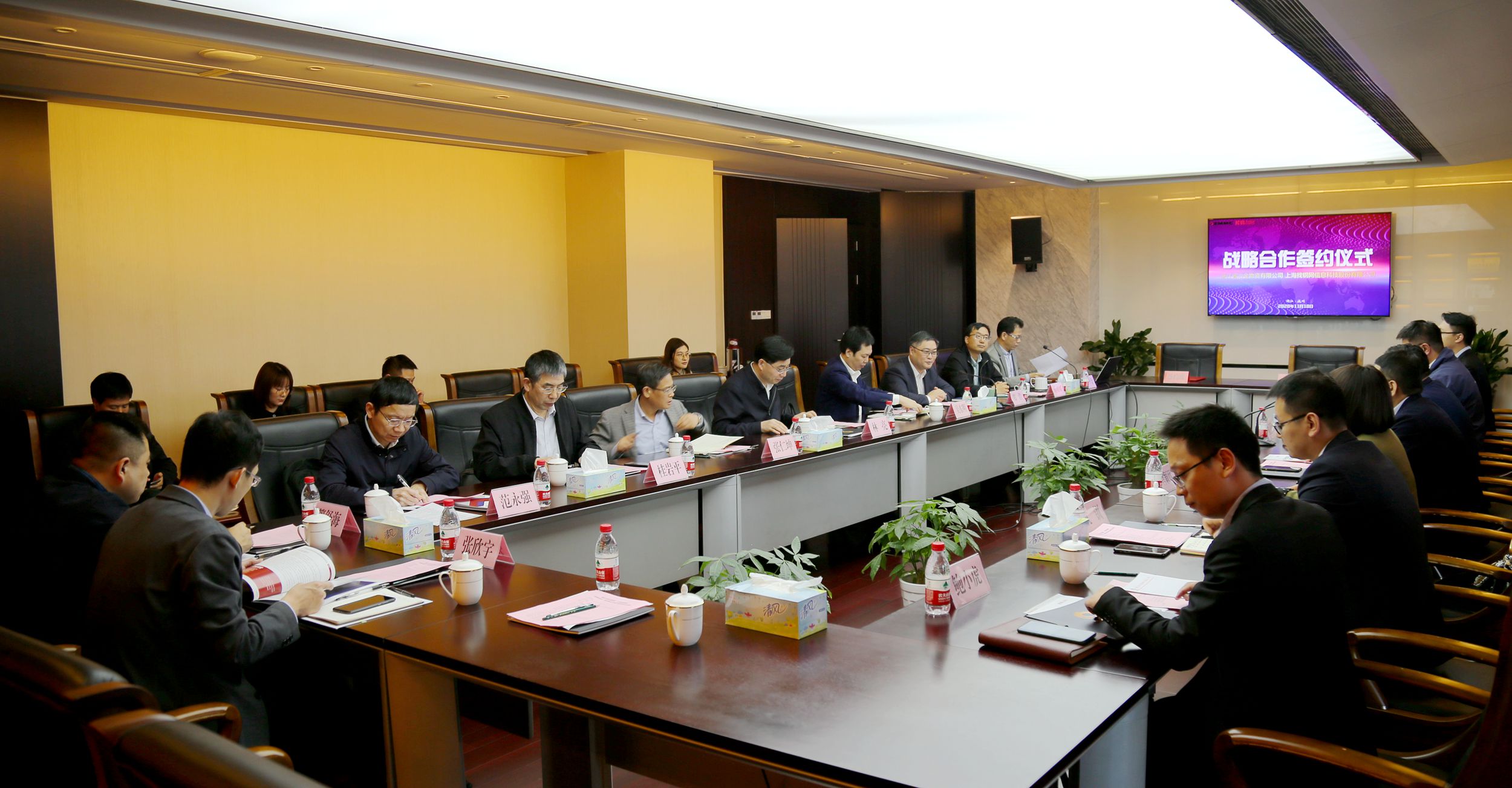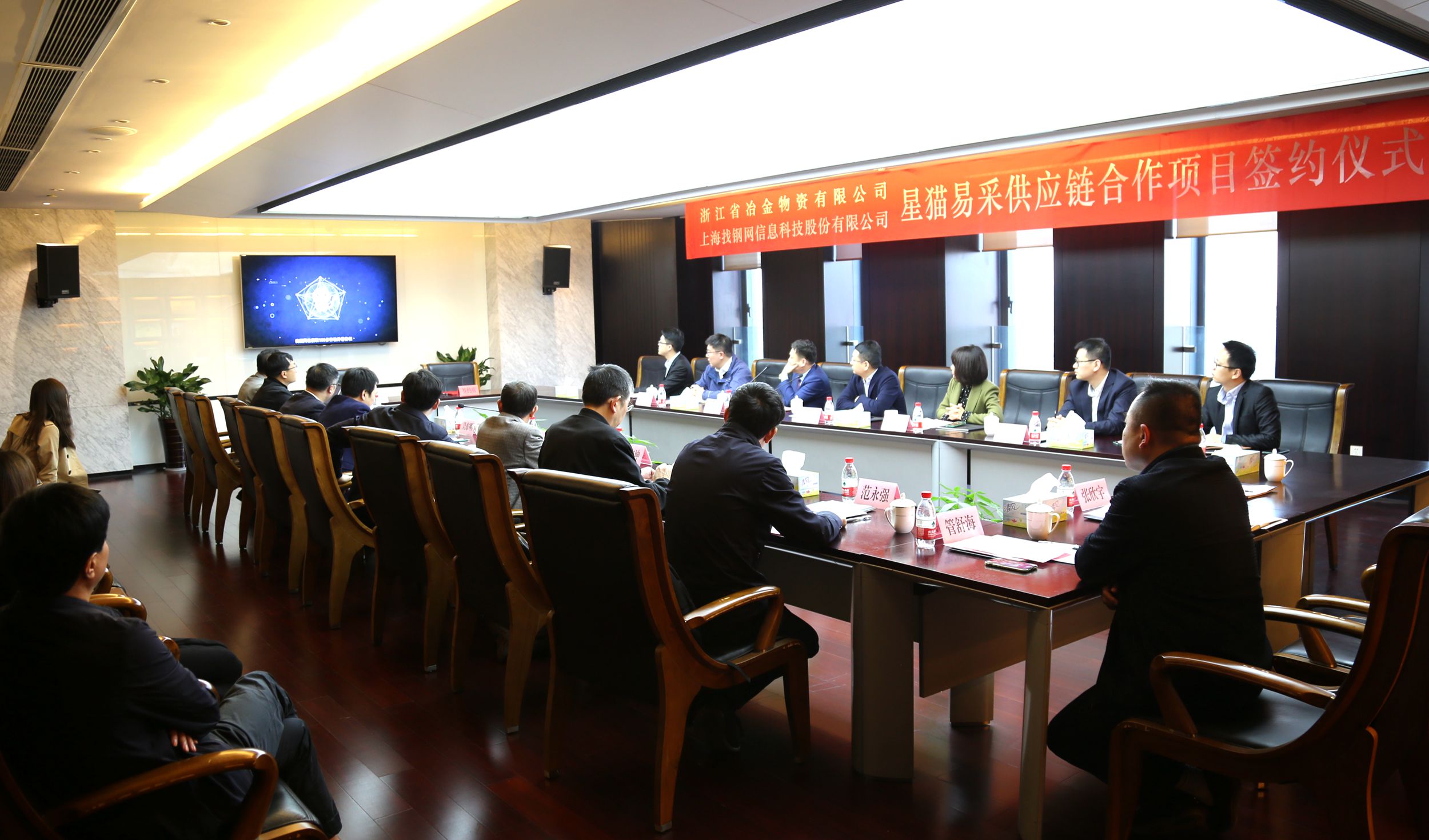 11月10日,冶金物資和找鋼網(wǎng)舉行了戰(zhàn)略合作簽約儀式。雙方在2017年開展優(yōu)勢(shì)互補(bǔ)的戰(zhàn)略合作基礎(chǔ)上,聯(lián)合推出“星貓易采”供應(yīng)鏈戰(zhàn)略合作項(xiàng)目,并將進(jìn)一步在利用互聯(lián)網(wǎng)、云計(jì)算等新技術(shù)助力傳統(tǒng)行業(yè)數(shù)字化轉(zhuǎn)型等方面,加強(qiáng)資源共享、共建共贏,共同開創(chuàng)電商平臺(tái)合作新模式。集團(tuán)黨委副書記、總經(jīng)理林亮,副總經(jīng)理吳東明,找鋼網(wǎng)創(chuàng)始人、CEO王東,黨委書記、高級(jí)副總裁宮穎欣,集團(tuán)公司、經(jīng)濟(jì)運(yùn)行部、戰(zhàn)略發(fā)展部、杭鋼云計(jì)算公司、商貿(mào)集團(tuán)和找鋼網(wǎng)鋼廠運(yùn)營(yíng)事業(yè)部、電商事業(yè)部、胖貓物流事業(yè)部等相關(guān)領(lǐng)導(dǎo)出席會(huì)議。